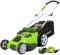 Как и на остальных моделях газонокосилок Greenworks установлена схема защиты двигателя от механических повреждений, защиты от случайного включения, обязательный ключ безопасности и кнопка-предохранитель. Для удобства хранения ручка газонокосилки складывается и её можно компактно хранить до следующего использования.