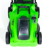 Мощная и надежная газонокосилка GD40LM16X 40V имеет ширину скашивания 41 см и травосборник объема 45 л, что позволяет стричь траву на территориях 400-600 м² за небольшое количество проходов. Высота скашивания с 5-ю ступенями регулировок высоты в диапазоне 30-85 мм. Регулировка высоты центральная и осуществляется одной ручкой, расположенной у переднего колеса. Также у косилки есть режим мульчирования. Газонокосилка обладает небольшим весом 13,2 кг и компактными размерами, что обеспечивает высокую маневренность и удобство. Также за счет каркасного травосборника устройство занимает минимум места при хранении. Корпус деки сделан из ударопрочного пластика, благодаря которому дека устойчива к попаданию посторонних предметов. Благодаря увеличенной конструкции батарейного отсека модель можно использовать с аккумулятором 8 Ач.