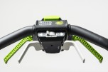 При работе на участке с густой травой, Вы можете нажать клавишу Turbo на рукояти газонокосилки. При нажатии и удержании клавиши обороты двигателя повышаются до 3100 оборотов в минуту, что позволяет выкосить особенно сложные участки. Обратите внимание, что использование Turbo, приводит к повышенному потреблению энергии аккумулятора.