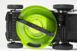 Газонокосилка имеет привод на задние колёса. Скорость движения регулируется в диапазоне 2,5-4,9 км/ч, что важно при обработке больших участков различного профиля.