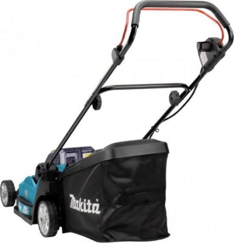Аккумуляторная газонокосилка с декой из композитных материалов и шириной кошения 43 см. Работает от двух аккумуляторов 18 В LXT, обеспечивающих рабочее напряжение 36 В. Травосборник оснащен индикатором заполнения, максимальная вместимость 50 л. Колеса оснащены шариковыми подшипниками. В комплект входит два аккумулятора 5 Ач и двухпостовое быстрое зарядное устройство.