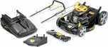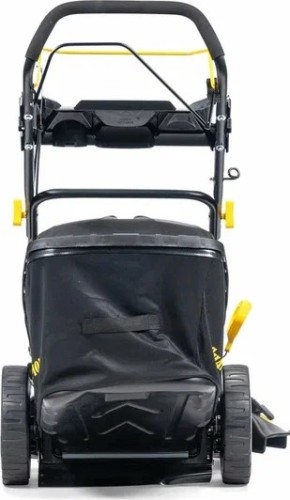Косилка комплектуется большим комбинированным травосборником. Верхняя часть бункера выполнена из полипропилена и имеет встроенный флажок индикатор наполнения. Нижняя часть сборника сделана из плотной не гниющей синтетической ткани. Задние колеса увеличены по отношению к передним на 30%. Благодаря большим задним колесам косилка с легкостью передвигается по кочкам и неровному рельефу местности. Кроме травосборника в комплект поставки так же входит мульчирующая заглушка и патрубок бокового выброса, позволяющие работать в соответствующих режимах. Переключения между режимами производится быстро и без применения, каких бы то ни было инструментов.