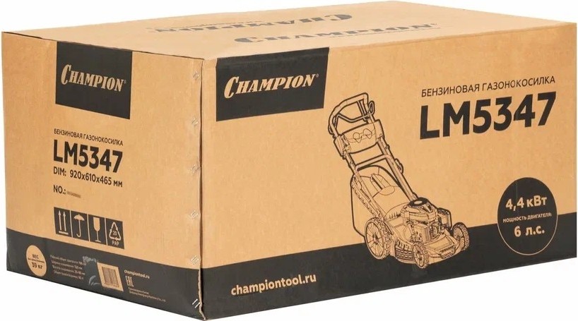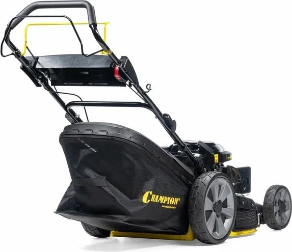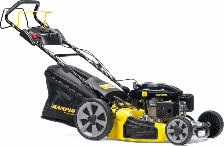 Газонокосилка бензиновая Champion LM5347 – крупноразмерная модель с большой мощностью для окашивания больших площадей газона. Косилка оборудована четырехтактным бензиновым двигателем Champion G201VK с верхним расположением клапанов и внушительной мощностью 6,5 лошадиных сил. Двигатель раздает мощность на заднюю колесную ось, обеспечивая самоходность, и на вращение стального двухлопастного ножа. Косилка комплектуется огромным комбинированным бункером для сбора травы, мульчирующей заглушкой и патрубком бокового выброса.