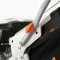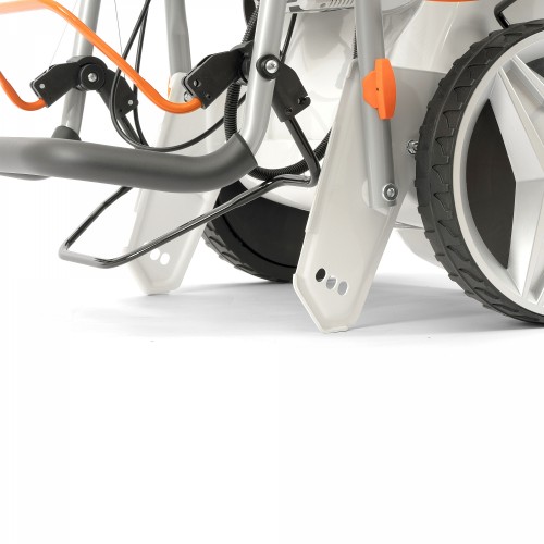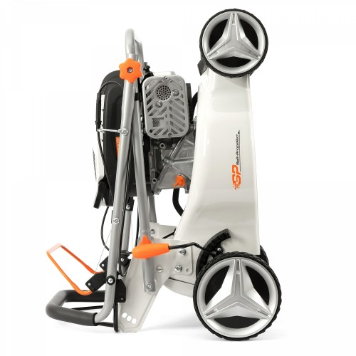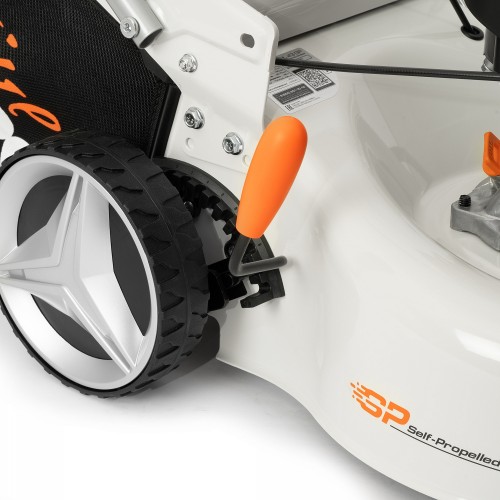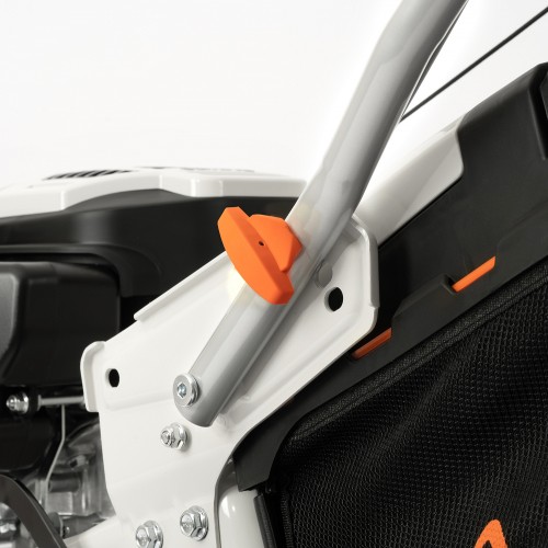 Модель оснащена топливным баком увеличенного объема емкости, что сокращает частоту дозаправки. Удобные механические регуляторы высоты скашивания позволяют адаптировать габариты среза под разные материалы покрытия. В комплекте идет травосборник с системой сбора, обеспечивающей чистоту во время работы.