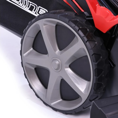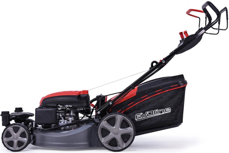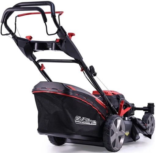 Травосборник выполнен из двух материалов - ударопрочного пластика и ткани. Газонокосилка EVOline LMG 51 CVE TURN имеет 4 скорости перемещения. Большие задние колёса и передние колёса рояльного типа помогают при перемещениии на неровных поверхностях, обеспечивая дополнительную устойчивость.