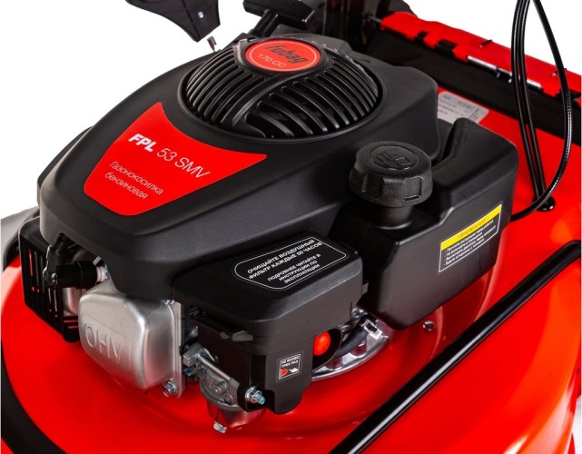 Складная ручка с антивибрационной накладкой легко регулируется по углу наклона и высоте. Быстрый запуск благодаря наличию праймера, широкие колеса на подшипниках, не портящие газон делают модель FPL 53 SMV удобной в применении, а встроенная система упрощенной промывки корпуса от сока и остатков скошенной травы выделяет ее среди других аналогов. На передней панели для длительной комфортной работы предусмотрен органайзер для воды.