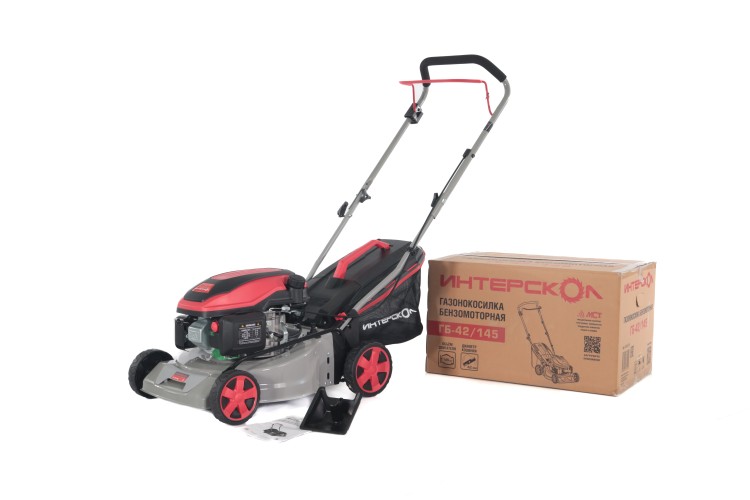 Бензиномоторная газонокосилка ИНТЕРСКОЛ ГБ-42/145 серии СТАНДАРТ предназначена для ухода за газонами площадью до 800 м2. Это связано с оптимальным режимом работы агрегата, который при соблюдении условий эксплуатации будет служить долго и бесперебойно.