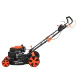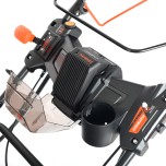 Мощная бензиновая газонокосилка РТ 53 LSE с изменяемой высотой скашивания предназначена для срезания и сбора травы на ровной площади средних и больших участках. Отличительной особенностью газонокосилки является наличие электростарта - возможность запуска от Li-Ion аккумулятора, идущего в комплекте. Возможна работа в трех режимах: сбор травы в травосборник, боковой выброс травы, режим мульчирования. Большие задние колеса придают косилке лучшую устойчивость и стабильность высоты кошения. Газонокосилку отличает легкий запуск, высокая производительность и простота в обслуживании. Складная рукоятка, съёмный травосборник и компактный размер позволяют легко транспортировать и хранить газонокосилку. Для облегчения работы газонокосилка оснащена приводом на колеса. Корпус косилки оснащен штуцером для подключения шланга - для быстрой очистки внутренней части деки после работы. В комплект поставки входит приспособление для мульчирования.
