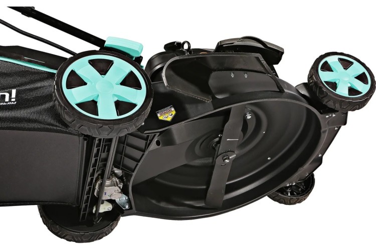 Корпус газонокосилки выполнен из высокопрочной стали и покрыт порошковой краской. Он устойчив к механическим повреждениям и ржавчине, что обеспечивает длительный срок службы газонокосилки. Коннектор на корпусе деки позволяет подключить садовый шланг и сразу промыть режущий механизм и внутреннюю поверхность от остатков травы, пыли и грязи после работы.