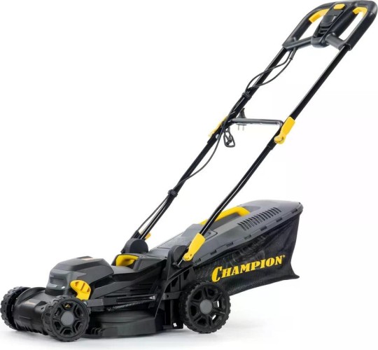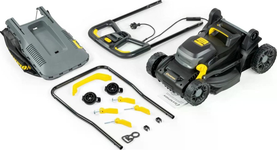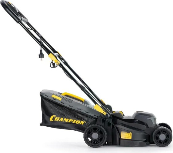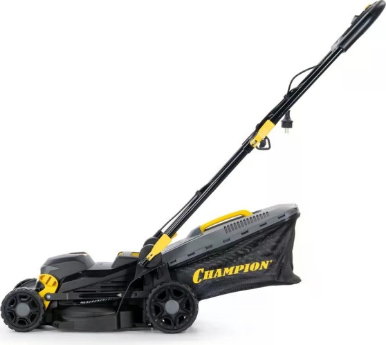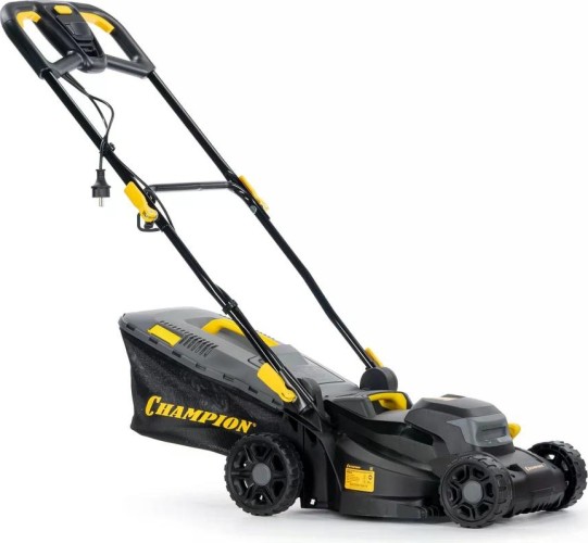 Газонокосилка электрическая CHAMPION EM3414 — легкая и компактная модель с шириной скашивания 34 см и регулировкой высоты от 20 до 70 мм.