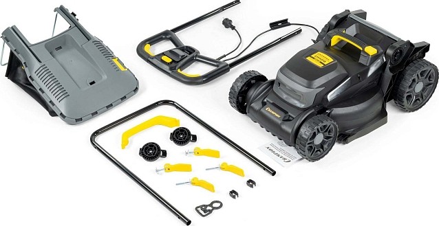 Оснащена мощным двигателем 1,8 кВт и шириной скашивания 400 мм, что обеспечивает быструю и качественную стрижку травы.