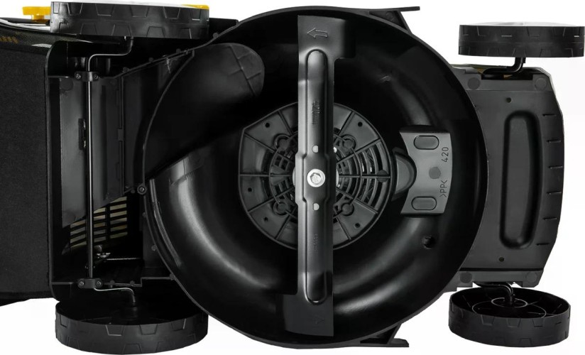 Ударопрочный корпус и ременная передача защищают двигатель от повреждений при внезапной остановке или столкновении с препятствием. Также наличие ременной передачи облегчает техническое обслуживание газонокосилки.