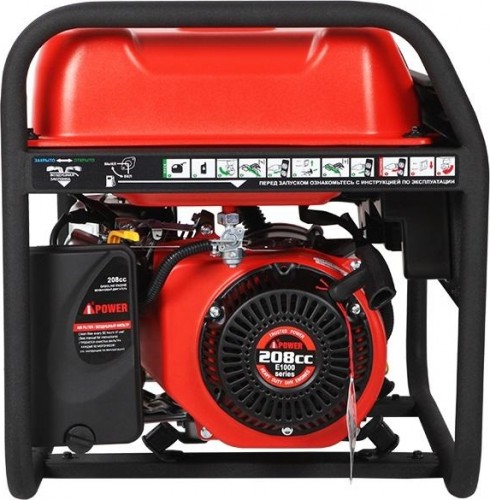 A-iPower A3100 оснащен компактным гильзованным 4-тактный OHV-двигателем объемом 208 куб. см с ручным стартером. На панели управления находятся две стандартные розетки 230В/16А, и разъем USB, от которого можно подзарядить смартфон, планшет и другие гаджеты. На цифровой дисплей в режиме реального времени выводятся сведения о работе генератора.