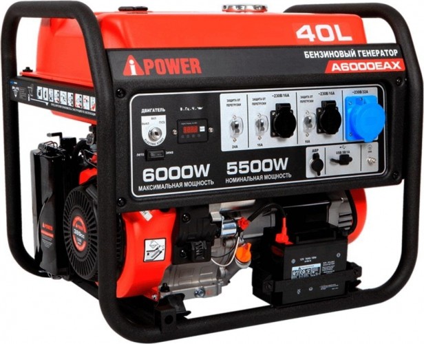 Бензиновый генератор A-iPower A6000ЕАX станет Вашим надежным источником питания при отсутствии электроэнергии. Этот генератор с максимальной мощностью 9,4 кВа и номинальной мощностью 5500 Вт !