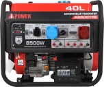 A-iPower A8500TFE оснащен мощным гильзованным 4-тактным OHV-двигателем объемом 459 куб. см с электрическим стартером. На панели управления находится одна стандартная розетка 230В/16А, одна силовая розетка 230В/32А, одна трехфазная розетка 400В/16А, клеммы для снятия полной мощности, и разъем USB, от которого можно подзарядить смартфон, планшет и другие гаджеты. На цифровой дисплей в режиме реального времени выводятся сведения о работе генератора. Электростартер обеспечивает быстрый и лёгкий запуск двигателя (аккумулятор входит в комплект поставки).