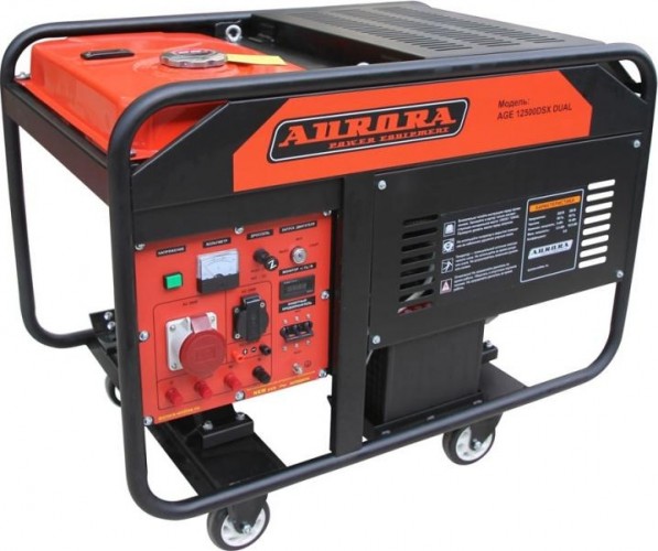 Бензиновый генератор Aurora AGE 12500 DSX DUAL 14686 служит для резервного питания электротехники. Жесткая рама гарантирует прочность конструкции, а поворотные колеса позволяют перемещать установку до места, где необходимо запитать электрические приборы. Наличие индикатора уровня топлива помогает вовремя производить дозаправку бака горючим. С помощью масляного щупа предоставляется возможность своевременно заменять масло в картере, чтобы избежать поломки агрегата. Светодиодный дисплей отображает время работы генератора, напряжение в сети и частоту тока. Двигатель модели заводится как ручным способом, так и электронным - с помощью ключа. Двухцилиндровый 4-х тактный бензиновый двигатель с верхним расположением клапанов, который установлен на генераторе, является аналогом двигателя HONDA. Поршни мотора усилены стальными гильзами, а значит, устройство прослужит своему хозяину много лет. Двигатели генераторов Aurora долговечны, обладают низким расходом масла на угар, экономят топливо и работают относительно тихо. Новая усиленная рама генератора надёжно фиксирует все элементы конструкции, а кожух бензобака обеспечивает его дополнительную защиту. Стоит обратить особое внимание на наличие на всех генераторах Aurora блока NEW AVR (Automatic Voltage Regulator), который предназначен для стабилизации выходного напряжения при изменении оборотов двигателя. Данное устройство гарантирует стабильную работу подключенного к генератору оборудования. Ещё одним преимуществом генераторов Аврора перед конкурентами является медная обмотка ротора и статора устройства. Медь по сравнению с алюминием обладает меньшим удельным сопротивлением и лучшими показателями электропроводности. Это значит, что во время работы генератор с медными обмотками будет греться гораздо меньше конкурентов с алюминиевыми обмотками. В следствие меньшего нагрева меди повышается надежность изоляции и стойкость к неблагоприятным условиям окружающей среды: высокой температуре, влажности или запылённости. Так же стоит отметить значительно лучшие прочностные характеристики меди и её стойкость к окислению.