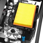 Генератор оснащен датчиком уровня масла, который отключает двигатель в случае отсутствия смазки. Помимо этого, пользователь может следить за работой устройства на многофункциональном дисплее, который в режиме реального времени показывает частоту тока и напряжение, а также информирует о количестве проработанных моточасов.