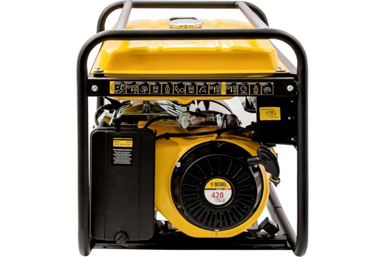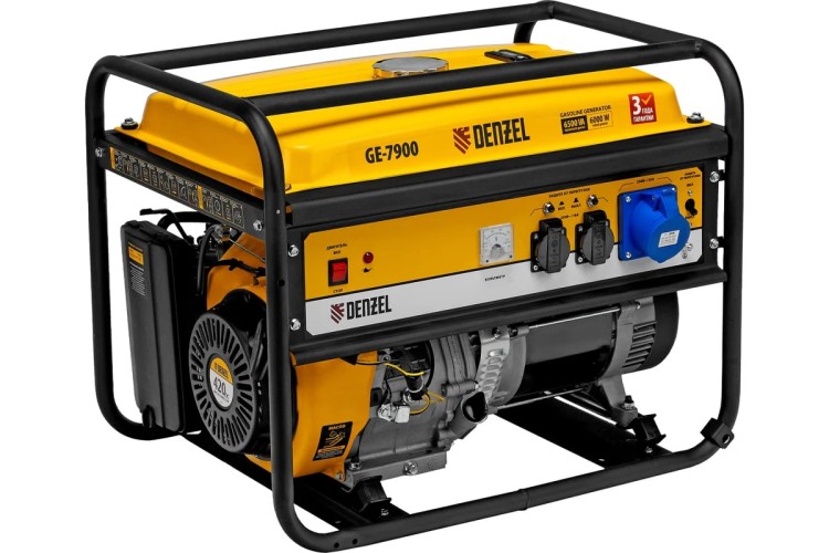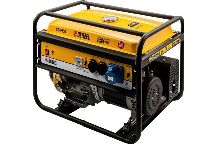 Генератор Denzel GE 7900 94638, 220 В / 50 Гц, мощностью 6,5 кВт, с ручным стартом и объемом бака 25 л, выдерживает большие нагрузки и подходит для питания мощного оборудования на даче, строительной площадке, в торговой точке. Генератор оснащен 3 розетками, одна из которых силовая, что позволяет подключать промышленное оборудование. Полного бака хватает на 8,5 ч работы без дозаправки.