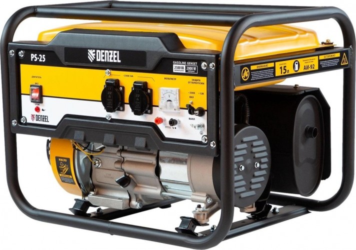 Бензиновый генератор Denzel PS-25 946814 мощностью 2,5 кВт, с баком объемом 15 л, работает от сети 230 В и подходит для дачи, палаточного лагеря, рыбалки, торговой точки. Он дает возможность подключать маломощные приборы и инструменты. Например, можно одновременно подключить 3 лампы накаливания, утюг, пылесос, холодильник. С интуитивно понятным управлением справится даже новичок.