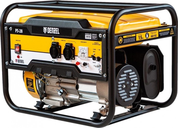 Бензиновый генератор Denzel PS 28 946824 мощностью 2,8 кВт с ручным стартером отлично подойдет для дачного участка, строительной площадки, домашней мастерской, кемпинга, рыбалки. Позволяет одновременно подключать несколько приборов, например, электрочайник, холодильник и 3 лампы дневного освещения. Благодаря увеличенному бензобаку на 15 л устройство будет работать более 12 часов без дозаправки. Экономичный и надежный четырехтактный двигатель мощностью 7 л.с. снижает выхлопы, расход топлива и уровень шума.