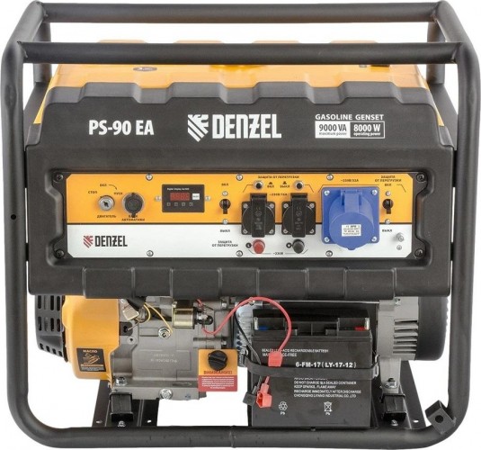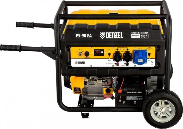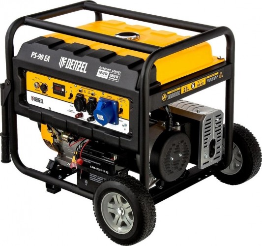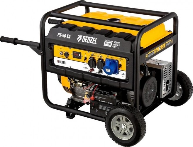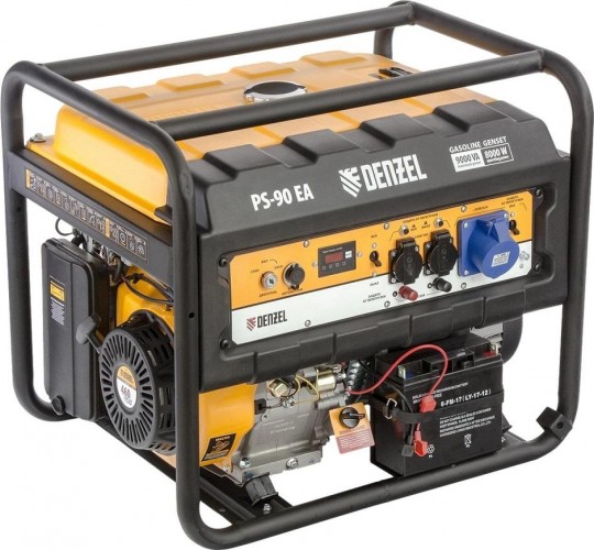Генератор бензиновый Denzel PS 90 EA 9469343 мощностью 9,0 кВт, с баком объемом 25 л, коннектором автоматики 5-PIN и электростартером, поддерживает напряжение в сети 230 В и подходит для загородного дома, кемпинга, строительной площадки. Выдерживает высокие нагрузки благодаря увеличенному объему двигателя 460 см3. Одновременно к нему можно подключить стиральную машину, обогреватель, холодильник, компьютер, насос и пылесос. Совместно с блоком автоматики Denzel Energomatic PS 115 946714 (в комплект не входит) генератор образует полноценную систему автоматического резервного электроснабжения.