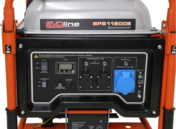 Инверторный генератор EVOline BPB 11800 – мощный и надежный источник автономного электроснабжения с чистой синусоидой. Максимальная мощность 10 кВА, номинальная – 9,5 кВА. Оснащен 4-тактным инжекторным бензиновым двигателем Zongshen GB 460 V EFI (459 cc) с электронным впрыском и электрическим стартером для удобного запуска. Большой топливный бак (39 л) обеспечивает длительную работу. Подходит для питания чувствительной техники благодаря стабильному напряжению. В комплектации: 2 розетки 16А, силовая 32А, выход 12V и эко-режим для экономии топлива. Идеален для стройплощадок, резервного и мобильного энергоснабжения.