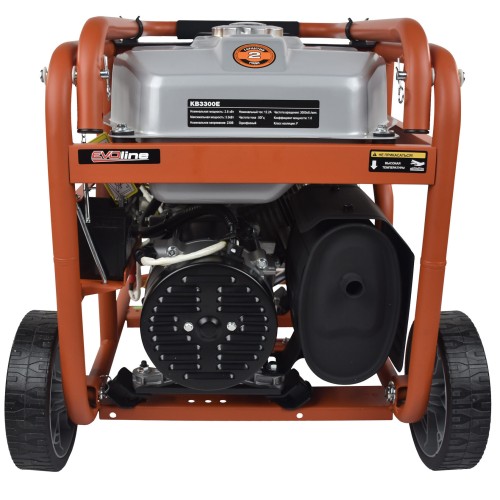 Генератор бензиновый EVOline KB 3300 E прост и удобен в использовании и подходит как для частного дома, так и для малого бизнеса. Благодаря вместительному топливному баку объемом 15 л, бензиновая миниэлектростанция KB 3300 E в течение длительного времени может работать автономно. Начать работу с бензиновым электрогенератором EVOline KB 3300 E не составляет большого труда, ведь четырехтактный двигатель легко и быстро запускается поворотом ключа при помощи электростартера. Также устройство можно снабдить блоком автозапуска для самостоятельного начала работы при исчезновении тока от основной сети. Номинальная мощность бензиновой электростанции EVOline KB 3300 E составляет 2,8 кВА.