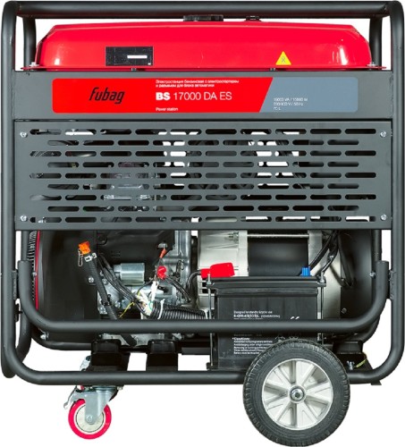 Трехфазный бензиновый генератор FUBAG BS 17000 DA ES с электростартером способен обеспечивать электроснабжением частные владения, строительные площадки или небольшое производство. Высокий ресурс работы станции обеспечат профессиональный V-образный 2-х цилиндровый OHV-двигатель FUBAG. Синхронный альтернатор с медными обмотками ротора и статора оснащен системой регулировки выходного напряжения (AVR), который гарантирует стабильное выходное напряжение и частоту тока.
