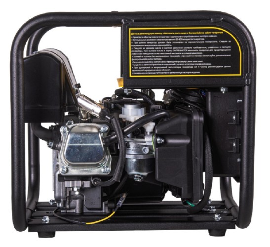 Генератор запускается от ручного стартера, двигатель четырёхтактный одноцилиндровый бензиновый с системой воздушного охлаждения. Отличается низким уровнем потребления топлива — 375 г/кВтч. Объём бензобака равен 2 л, что гарантирует продолжительную работу без частых дозаправок. Смазочная система, рассчитанная на 350 мл, использует моторное масло типа SAE 10W-40.