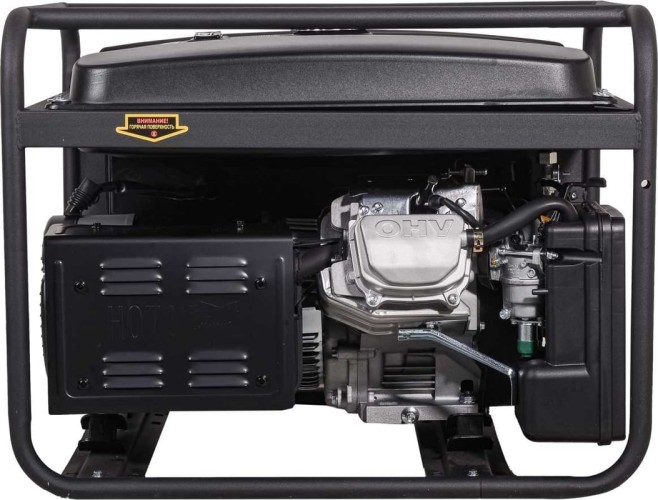 Четырехтактный двигатель мощностью 21 л.с. обеспечивает стабильную работу и высокую производительность. Максимальная мощность составляет 11 000 Вт. Номинальная мощность в 9 600 Вт позволяет подключать множество электрических приборов одновременно, что делает генератор универсальным решением для различных задач. Запуск происходит от ручного стартера.