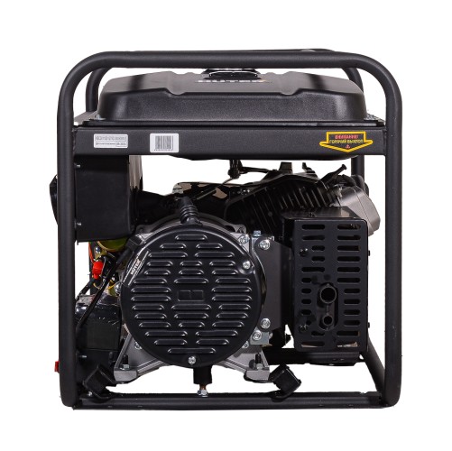Генератор оборудован мощным и надёжным четырёхтактным бензиновым двигателем объёмом 21 л.с., который гарантирует стабильность работы и высокую производительность. Максимальная мощность генератора равна 11 000 Вт, а номинальная — 9 600 Вт. Благодаря этому можно подключать различные мощные устройства, такие как сварочные аппараты, насосы, инструменты и бытовые приборы. Бак для бензина на 25 л обеспечивает продолжительную работу без частой заправки топливом. Расход составляет 375 г/кВтч, что делает генератор экономичным в использовании. Объём масляной системы 1100 мл гарантирует надёжную защиту двигателя и увеличивает срок его службы.