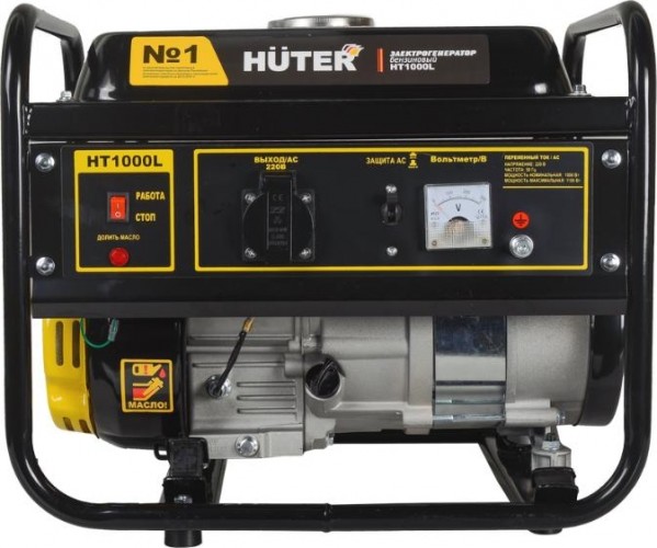 Электрогенератор HUTER HT1000L оснащён системами защиты от короткого замыкания и перегрузок, а также возможностью регулировать обороты двигателя, что существенно экономит топливо и рабочий ресурс агрегата. Стартер в модели ручной, а это значит, что он без проблем запускается в любых условиях. Сам генератор синхронного типа, щёточный. Номинальная мощность 1 кВт, напряжение – 220/230 В, номинальная частота переменного тока – 50Гц.