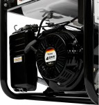 Увеличенный бензобак 25 л гарантирует 7-8 часов работы. Стальная рама диаметром 32 мм для установки ручек и колес защищает внутренние детали от повреждений. Система поддержания параметров выходного напряжения (AVR) обеспечивает стабильное питание.