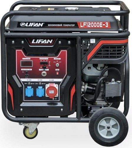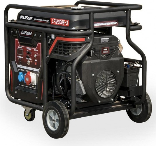 LIFAN 12000E-3 - мощный трехфазный бензиновый генератор, применяемый в качества источника электроэнергии на дорожных и строительных работах, промышленных объектах, на личных загородных участках, в автомастерских, магазинах и в других подобных областях. Исключительная надежность, устойчивость к поломкам и высочайшая производительность делают данную модель одной из лучших на рынке в своем классе электрогенераторов.