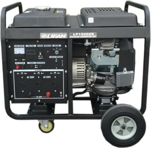 LIFAN 15000E - мощный однофазный бензиновый генератор, применяемый в качества источника электроэнергии на дорожных и строительных работах, промышленных объектах, на личных загородных участках, в автомастерских, магазинах и в других подобных областях. Исключительная надежность, устойчивость к поломкам и высочайшая производительность делают данную модель одной из лучших на рынке в своем классе электрогенераторов.