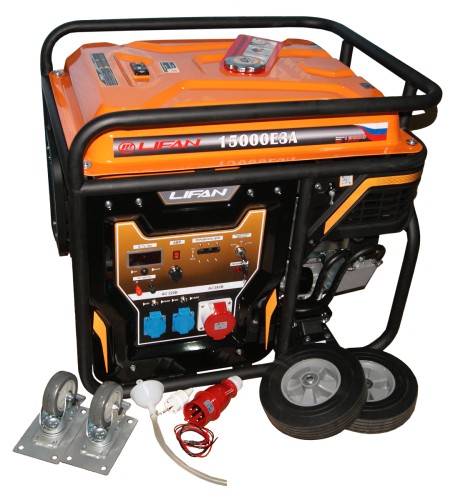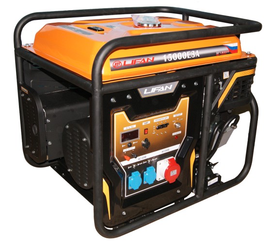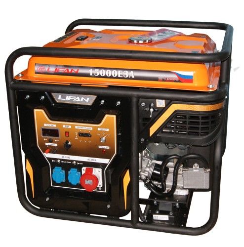 LIFAN 15000E3A - мощный трехфазный бензиновый генератор, применяемый в качестве источника электроэнергии на дорожных и строительных работах, промышленных объектах, на личных загородных участках, в автомастерских, магазинах и в других подобных областях. Исключительная надежность, устойчивость к поломкам и высочайшая производительность делают данную модель одной из лучших на рынке в своем классе электрогенераторов.