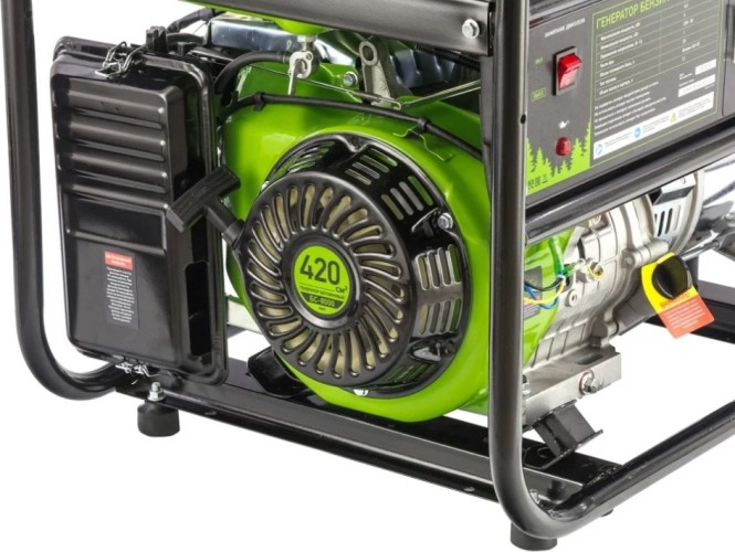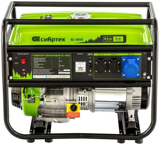 Бензиновый генератор Сибртех БС-8000 94547 на 230 В, с 4-тактным двигателем, с ручным стартером и баком объемом 25 л, вырабатывает 6,6 кВт и отлично подойдет для дачи, стройки, торговой палатки, гаража или мастерской. Высокая мощность и наличие силовой розетки позволяют одновременно подключить мощный водяной насос, электроплиту, а также обеспечить освещение рабочего места.