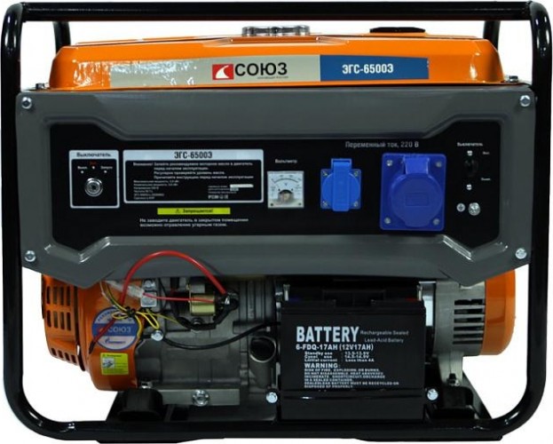 Бензогенератор СОЮЗ , 5,5/5,0 кВт, AVR (Авто. Рег.Напр.), эл/ручн ст,73,5 кг,бак 25л ЭГС-6500Э представляет собой мобильное оборудование, которое легко перемещать по строительной площадке и мастерской либо хранить в подвале или гараже частного дома. Модель обеспечивает чистый ток без помех.