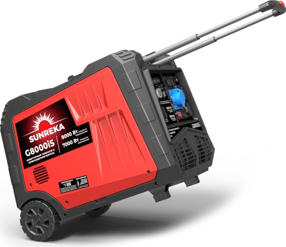 Генератор бензиновый инверторный SUNREKA G8000iS - отличный вариант для питания резервным электричеством базы отдыха, загородного дома, как аварийный мобильный для коммунальных служб, а также для проведения отделочных/строительных работ. Профессиональный 4х-тактный бензиновый гильзованный двигатель ОНV-типа рабочим объемом 458 см3 запускается ручным стартером быстро и легко, даже при низких температурах. На панели генератора установлен высококонтрастный качественный LCD-дисплей, который показывает рабочие параметры нагрузки и моточасы, уровень топлива в баке/ Есть функция экономии топлива на режимах частичных нагрузок. С помощью параллельного подключения второго инверторного генератора SUNREKA можно увеличить выходную мощность однофазной электрической сети. Имеется разъем для подключения блока автозапуска, что позволяет использовать данный генератор в качестве резервного в составе аварийного ввода резерва. При этом, обеспечена 100% совместимость с блоками автозапуска как для генераторов серии Х, так и для генератора G8000iS, несмотря на более сложное управление двигателем. Поэтому при апгрейде генератора серии X на высокотехнологичный тихий инверторный генератор G8000iS в составе системы автоматического ввода резерва, блок автозапуска и электрическую разводу менять не нужно.