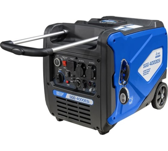 Бензогенератор инверторный SGG 4000ESi в шумопоглащающем кожухe, с электростартом, режимом экономичного расхода топлива - предназначен для подключения к нему потребителей тока общей максимальной мощностью до 3,7 кВт. Переносной компактный инверторный генератор предназначен для питания электроприборов на загородном участке, в походе, на рыбалке. Благодаря использованию в этой модели инверторного преобразователя, на выходе получается стабильный ток, без каких-либо скачков, генератор способен регулировать работу двигателя в зависимости от нагрузки: к примеру, если нагрузка составляет половину от выходной мощности, то и мощность двигателя снижается вдвое; это дает значительную экономию топлива. Инверторные модели получаются более легкими и компактными, чем традиционные генераторы. Благодаря двигателю, специально разработанному под инверторный генератор и особенной конструкции корпуса, удалось значительно понизить уровень шума. Режим ECO обеспечивает экономичный расход топлива, синхронный альтернатор с медными обмотками ротора и статора увеличивает ресурс двигателя. Выход 12 вольт позволяет подзарядить автомобильный аккумулятор в экстренном случае. Инверторный генератор считается оптимальным выбором для нагрузки, чувствительной к качеству тока — такой, как аудиотехника или телевизор.