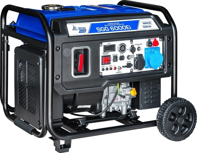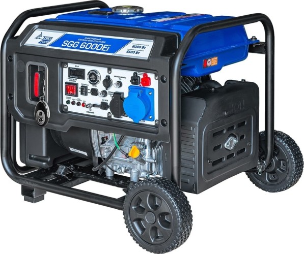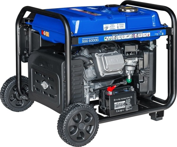 Бензогенератор инверторный SGG 6000Ei с электростартом, коннекотором для подключения АВР, укомплектован колесным комплетом для удобства перемещения.