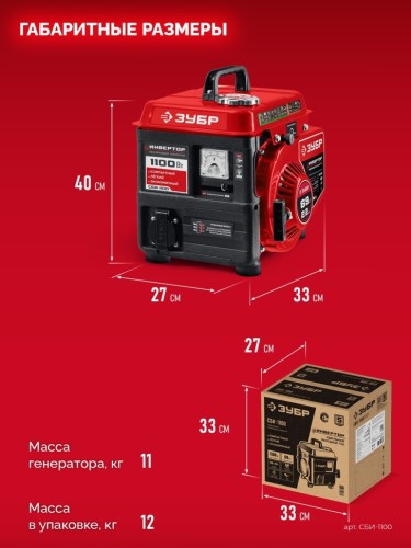 Генератор бензиновый ЗУБР СБИ-1100 2-тактный, инверторный