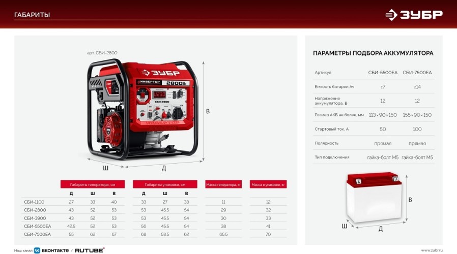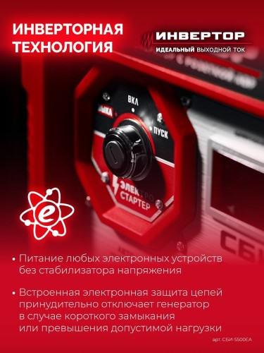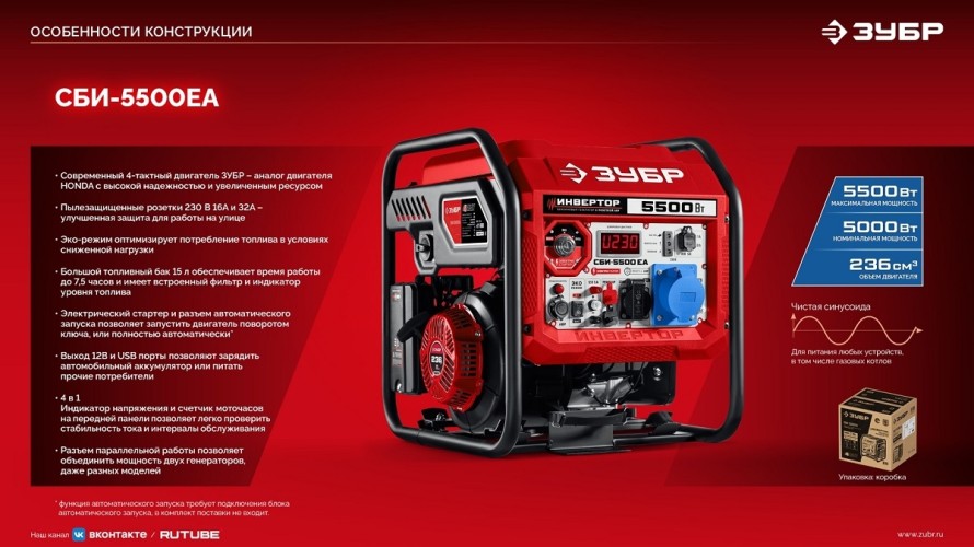 Генератор бензиновый ЗУБР СБИ-5500ЕА с электростартером и розеткой АВР