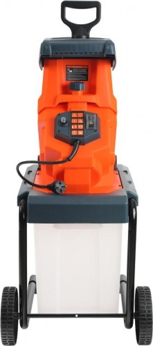 PT SE 26 – электрический садовый ножевой измельчитель предназначен для переработки веток, сучьев диаметром до 40мм, а также мягких растительных отходов в мульчу оптимального размера. Массивная рама гасит вибрации, широкое основание обеспечивает устойчивость. При работе ветки самозатягиваются внутрь рабочей камеры. Мягкие растения можно подать с помощью толкателя. Для доступа в рабочую камеру и очистки или замены двусторонних ножей достаточно открутить крупный винт-фиксатор крышки. Защитные датчики выключают измельчитель при блокировке ножей или открытии крышки рабочего отсека. Благодаря большим колесам аппарат легко перевозить. Через прозрачные стенки удобно следить за наполненностью контейнера. Во время хранения внутрь контейнера помещается рабочая часть.