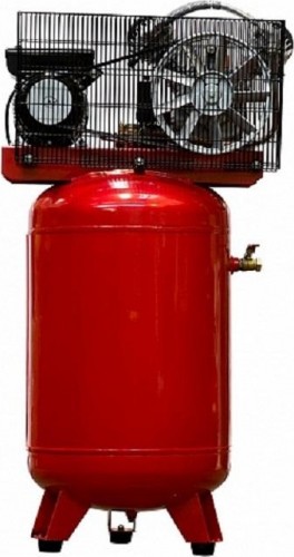 V-образный 2-х цилиндровый двигатель и ременной привод для более эффективной работы с большими нагрузками. Компрессор отличается простотой и надёжностью конструкции, высокой ремонтопригодностью и оптимальным соотношением цены и качества. Компрессоры с ременным приводом, по сравнению с коаксиальными коллегами, имеют гораздо больший моторесурс. Так же, за счёт применения ременной передачи, удаётся значительно снизить уровень шума. Данная модель имеет вертикальное расположение ресивера. Это значительно экономит место.