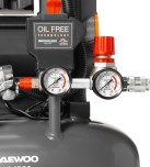 Безмасляный компрессор DAEWOO DAC 190S с пониженным уровнем шума изготовлен по технологии OIL-FREE. На выходе сжатый воздух не содержит масляных примесей и взвесей.