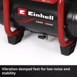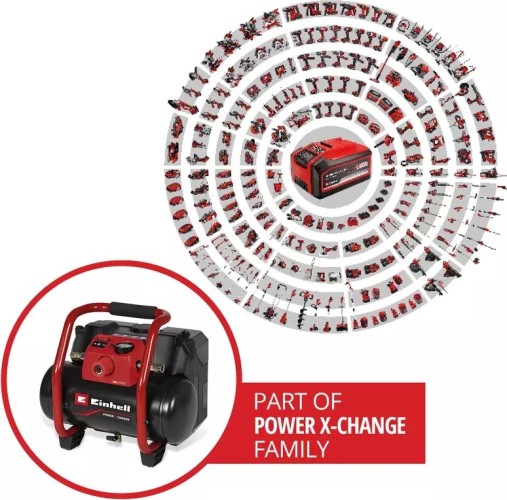 Компрессор поршневой безмасляный EINHELL TE-AC аккумуляторный 36/150 Li OF-Solo у вас никогда не закончится воздух, будь то в мастерской или в гараже. Это возможно благодаря мощному, но при этом портативному беспроводному компрессору с 6-литровым баком, макс. рабочим давлением 8 бар и производительностью 150 литров в минуту. Он работает по технологии Twin-Pack, в которой используется пара аккумуляторов Power X-Change на 18 В. Аккумуляторный отсек можно закрыть, чтобы защитить два аккумулятора от попадания воды и пыли. Насос не требует смазки и обслуживания, что сводит к минимуму трудозатраты по его обслуживанию. Выходное отверстие для регулируемого рабочего давления оснащено манометром и быстроразъемным соединением. Необходимое рабочее давление можно установить вручную с помощью регулятора давления. Портативность — одно из главных преимуществ аккумуляторных устройств, поэтому встроенная ручка для переноски является неотъемлемой частью конструкции. Благодаря прорезиненным ножкам с виброгасителем компрессор весом 9,7 кг устойчив и практически не издает шума во время работы. Для удобства обслуживания предусмотрен дренажный клапан для слива конденсата. В конструкции предусмотрен практичный отсек для аксессуаров, благодаря которому их можно легко хранить под рукой в любом месте. Прибор не поставляется с аккумулятором или зарядным устройством. Они продаются отдельно.