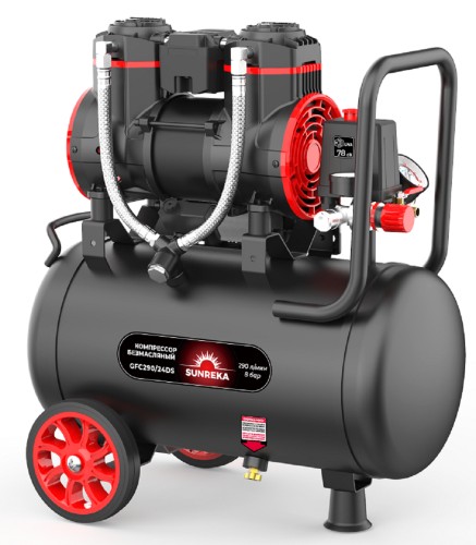 Компрессор поршневой безмасляный SUNREKA GFC290/24DS идеален для домашнего использования, строительных работ, гаража, покрасочных работ, любых задач с умеренным расходом воздуха.