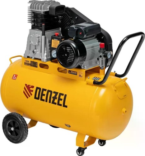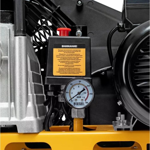 Компрессор поршневой DENZEL BCI 2200/100, воздушный рем. привод, мощностью 2,2 кВт и производительностью 420 л/мин, с ресивером объемом 100 л, — источник сжатого воздуха для работы с пневмогайковертом, пневмодрелью, краскопультом, углошлифовальной машиной или другим пневмоинструментом. Для подключения инструмента предусмотрено 2 быстросъемных коннектора Рапид (Евро). Специальный порт позволяет подключить напрямую дополнительный ресивер или пневмомагистраль. Компрессор будет полезен на строительной площадке и станции техобслуживания.