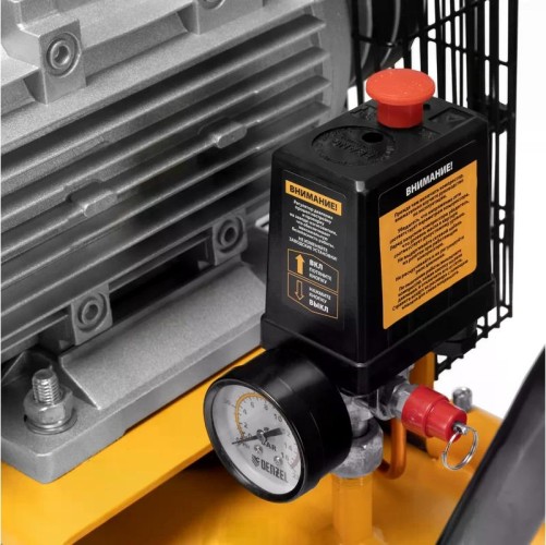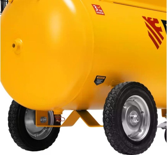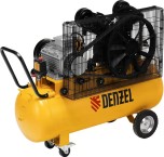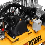 Компрессор поршневой DENZEL BCV 4000-T/100 воздушный рем. привод, мощностью 4,0 кВт и производительностью 690 л/мин, с ресивером объемом 100 л, — источник сжатого воздуха для работы с пневмогайковертом, пневмодрелью, краскопультом, углошлифовальной машиной или другим пневмоинструментом. Двигатель с медной обмоткой обеспечивает стабильную работу в течение длительного времени. Для подключения инструмента предусмотрено 2 быстросъемных коннектора Рапид (Евро) и штуцер «елочка» с краном. Специальный порт позволяет подключить напрямую дополнительный ресивер или пневмомагистраль. Компрессор отличается высокой производительностью и будет полезен на строительной площадке и станции техобслуживания.